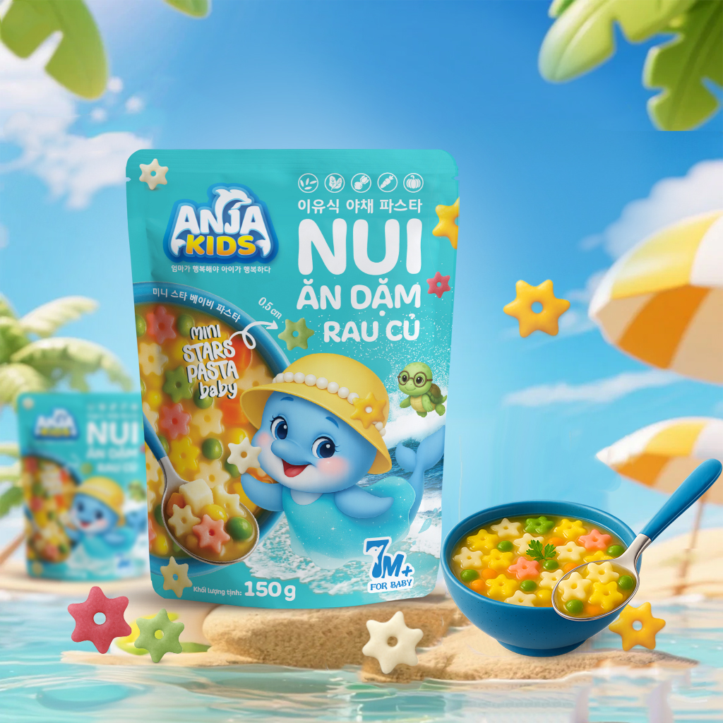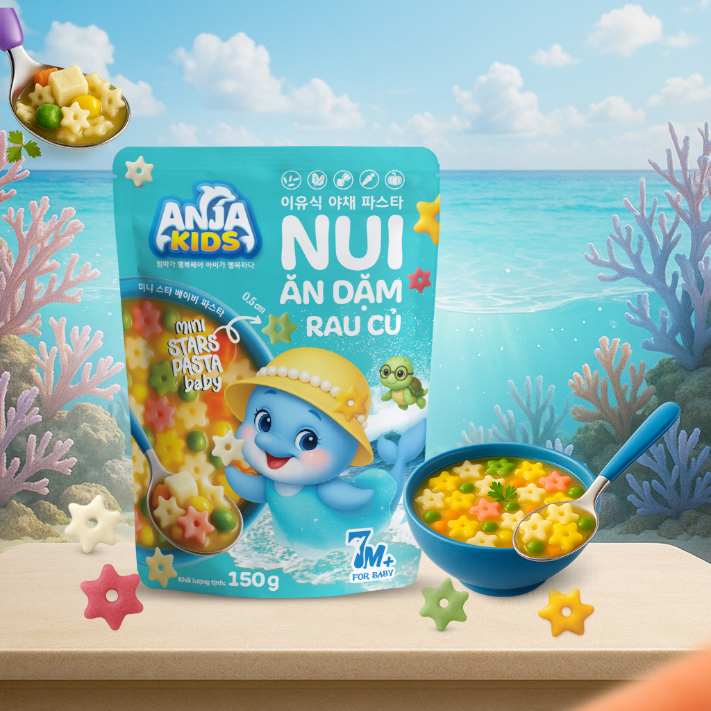 Điểm nổi bật: Nui ăn dặm rau củ Anja Kids được chế biến bằng công nghệ hiện đại, giữ trọn hương vị tự nhiên của các nguyên liệu. Sản phẩm dễ bảo quản, tiện lợi mang theo, giúp bé phát triển kỹ năng nhai và thói quen ăn uống tự lập, đồng thời hỗ trợ sự phát triển thể chất và trí não toàn diện.